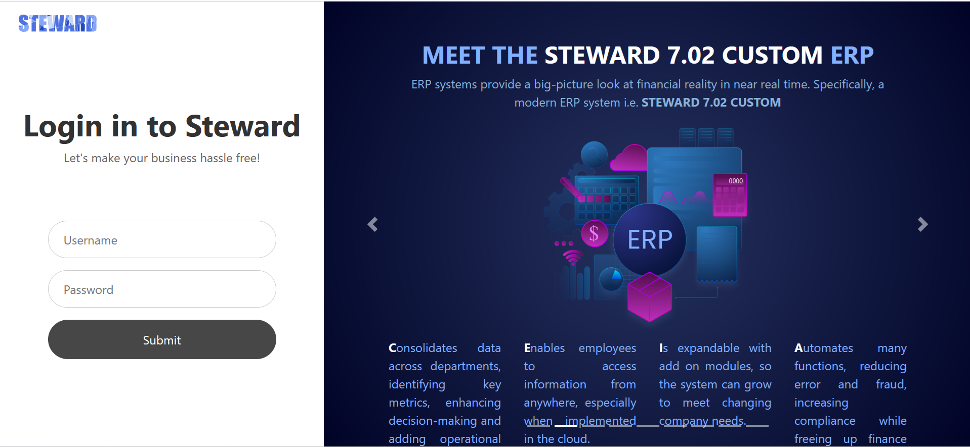 Centralized Data Integration Streamlines information flow across departments, uncovering key performance indicators to drive smarter decisions and operational efficiency. Cloud-Enabled Accessibility Empowers teams to retrieve and update data from any location, ensuring continuity and collaboration—especially vital for hybrid work environments. Modular Scalability Grows alongside your business with plug-and-play modules, allowing seamless expansion and customization as needs evolve. Automated Operations Reduces manual interventions, limits errors and fraud, boosts compliance, and liberates finance teams to focus on strategic initiatives.